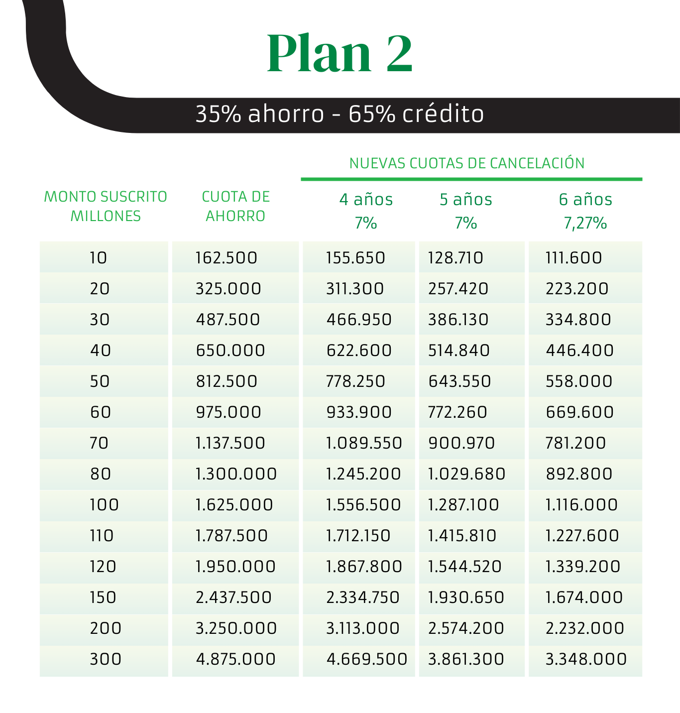 Al ser dueños del nuevo plan, el cliente realiza un aporte para hacer el ajuste financiero y realizar el cambio de plan al que se ajuste al plazo que dejamos. Este paso se puede hacer inmediato al Paso 1.